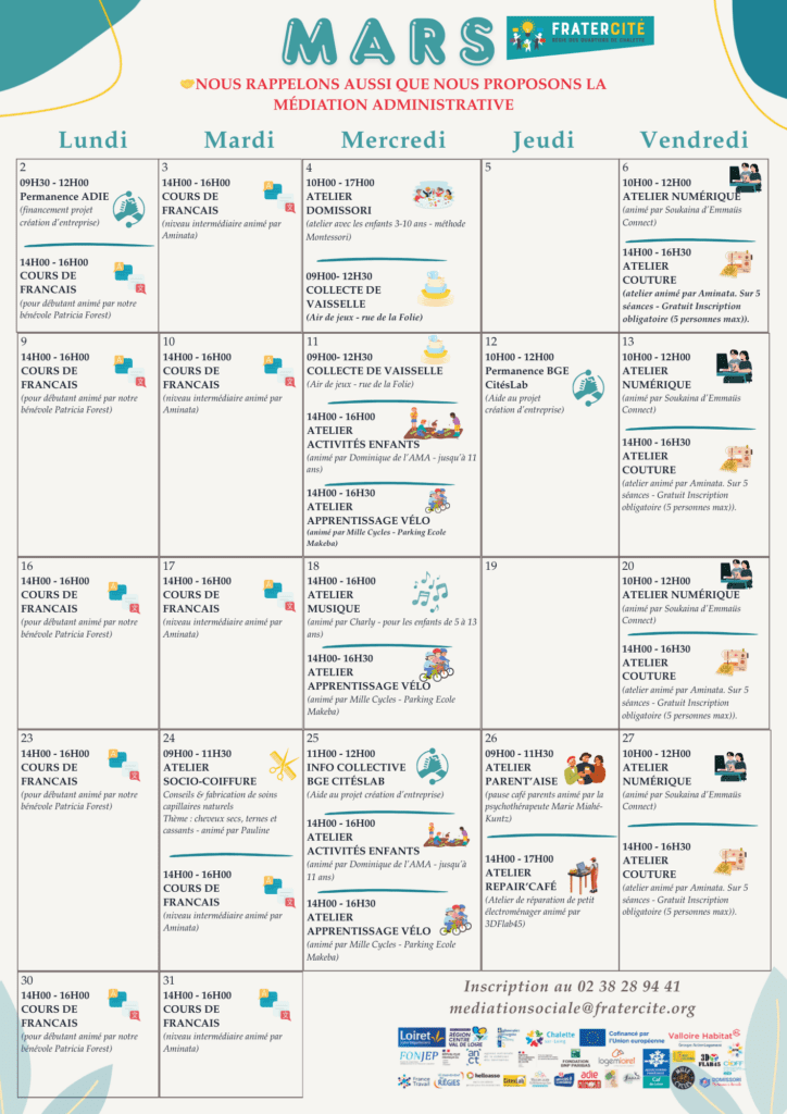 En juillet, Fratercité vous propose une belle programmation d’ateliers, de moments festifs et de temps de partage pour tous les âges. Apprentissage, expression, détente, rencontres : un mois rythmé et vivant dans les quartiers.